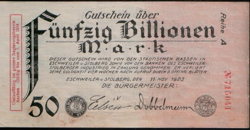 A desvalorização era tamanha que as cédulas eram usadas como brinquedo para as crianças e após um plano de reavaliação monetária, as notas chegaram a ser usadas como papel de parede em estabelecimentos comerciais e bancários alemães.